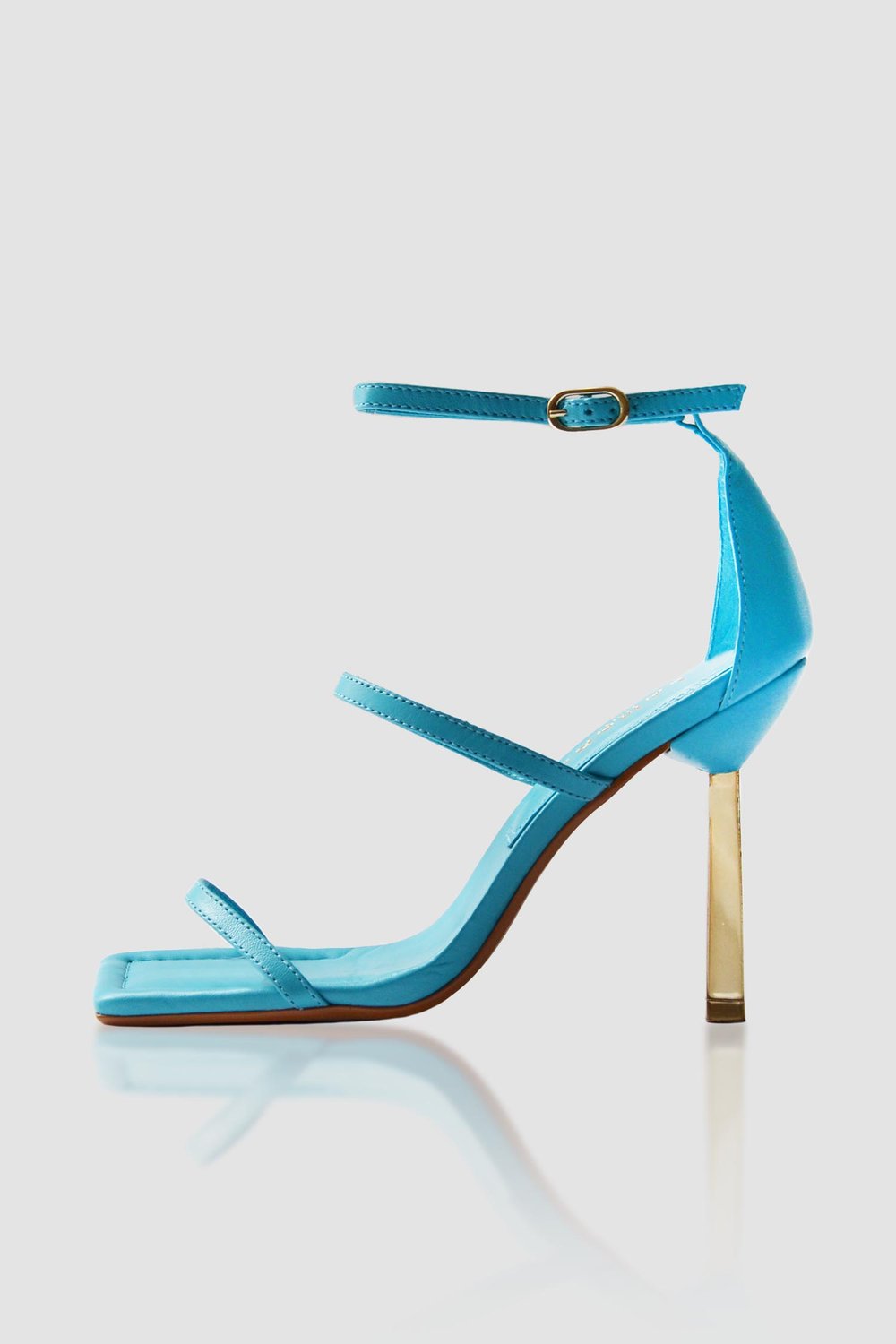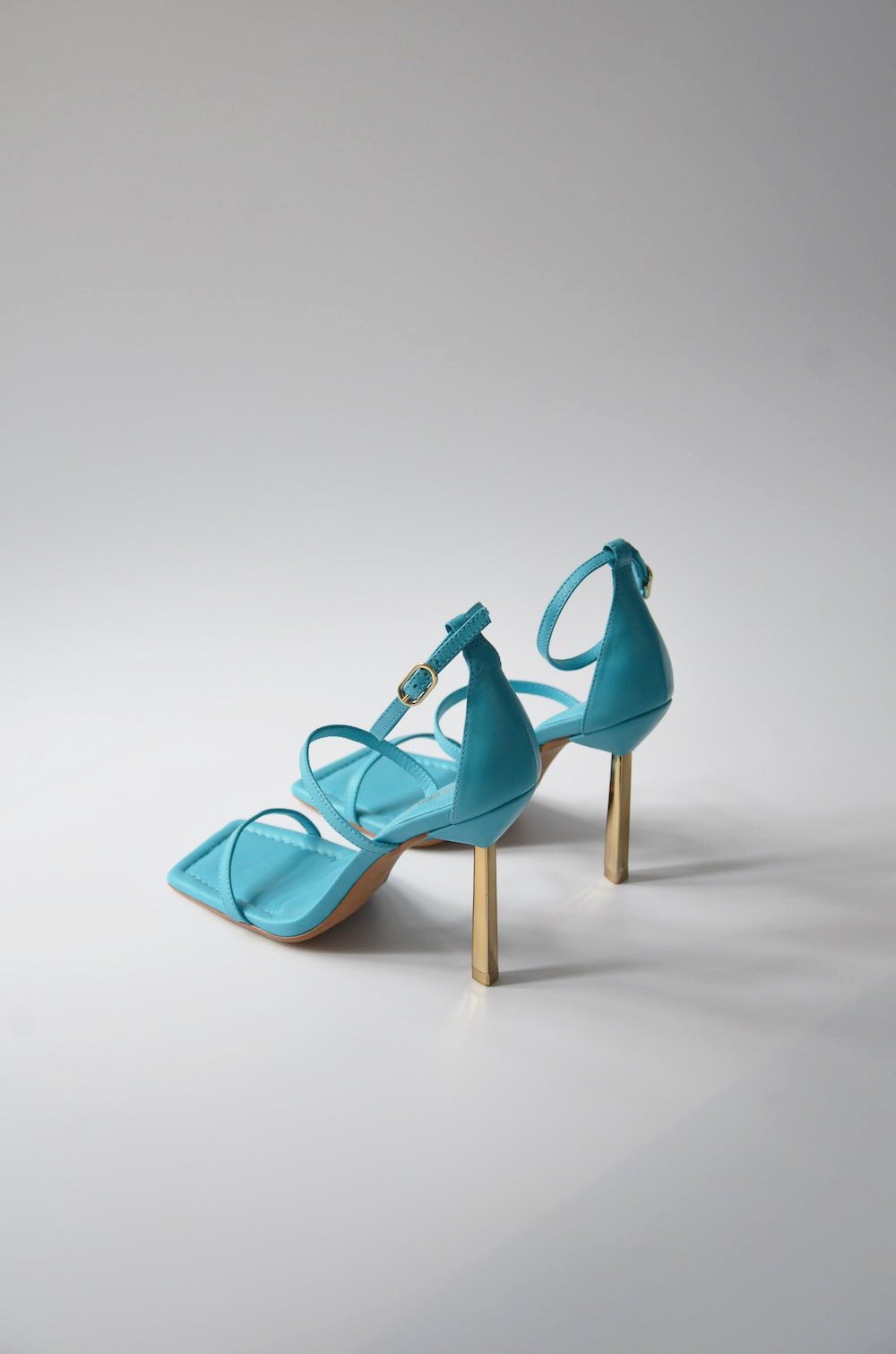Our Not Your Girl sandal is handcrafted in blue nappa leather with our signature metal heel. This classic three strap pattern combined with our perfect square toe shape results in the ultimate statement colour sandal. Not Your Girl is designed with our signature ultimate padding system which reveals a sunken dream so you can stomp boldly and strongly. Not Your Girl is a classic empowering bold sandal, made to move with you.