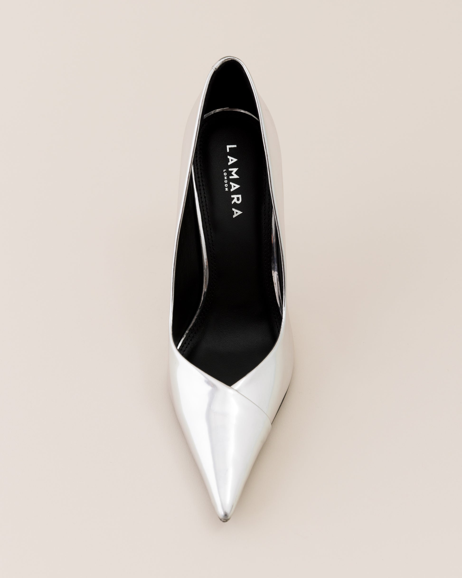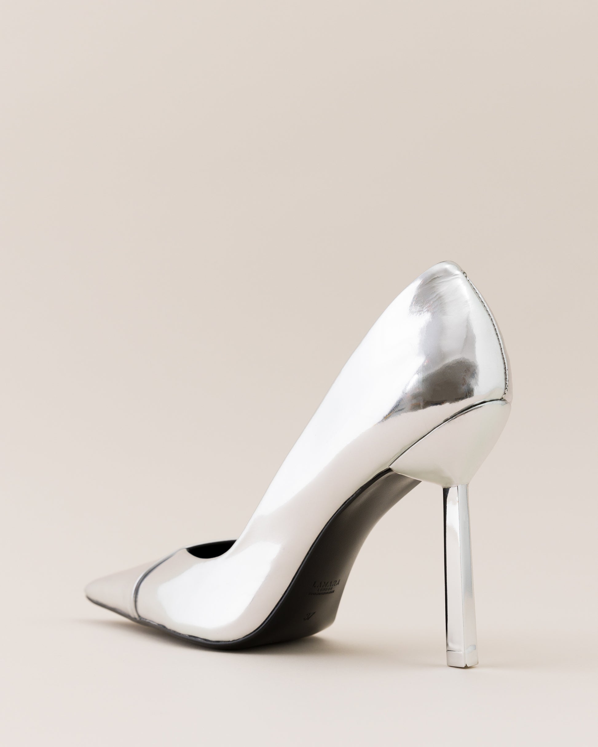 Divine minimalism is revealed by Sloane Sq elegant stiletto pump. Our beautiful sole is underset by our feature heel with a metal top piece, signature of the brand, in metallic silver. Refined elegance at its best. Handmade in Brazil.