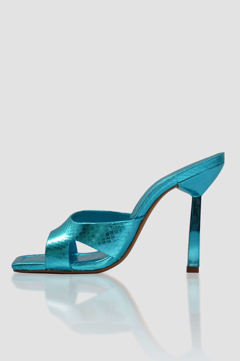 Our Playtime mule is handcrafted in the most beautiful metallic blue leather with a snake embossed printed stamp. Paired with our signature metal heel which is electroplated blue to create the ultimate statement mule. The perfect matchmaker to any outfit, Playtime is designed with our signature ultimate padding system which reveals a sunken dream so you can wear with ease, confidence and comfort. Playtime is a mule sandal like no other, made to move with you.