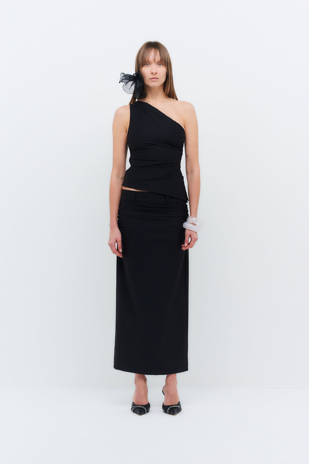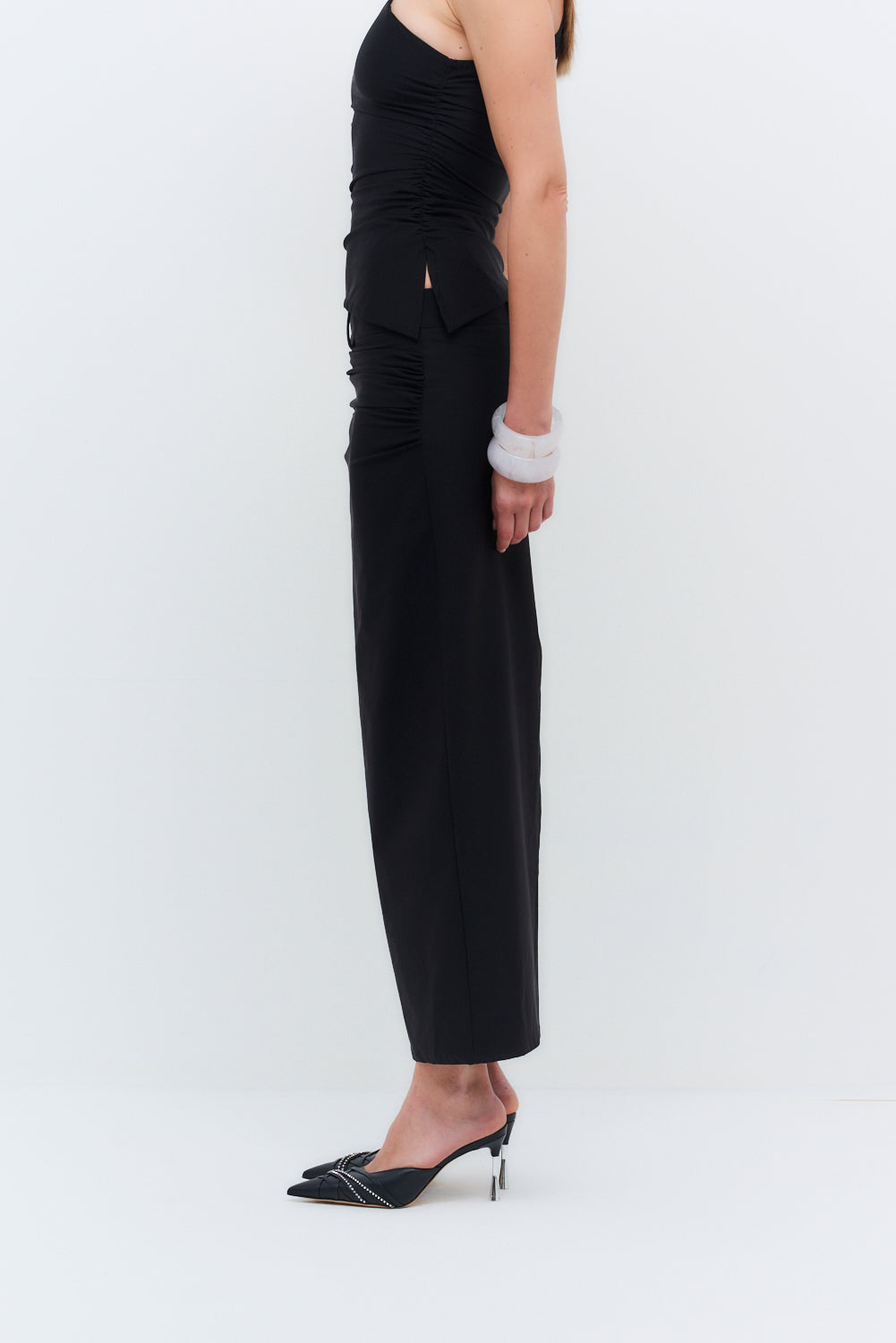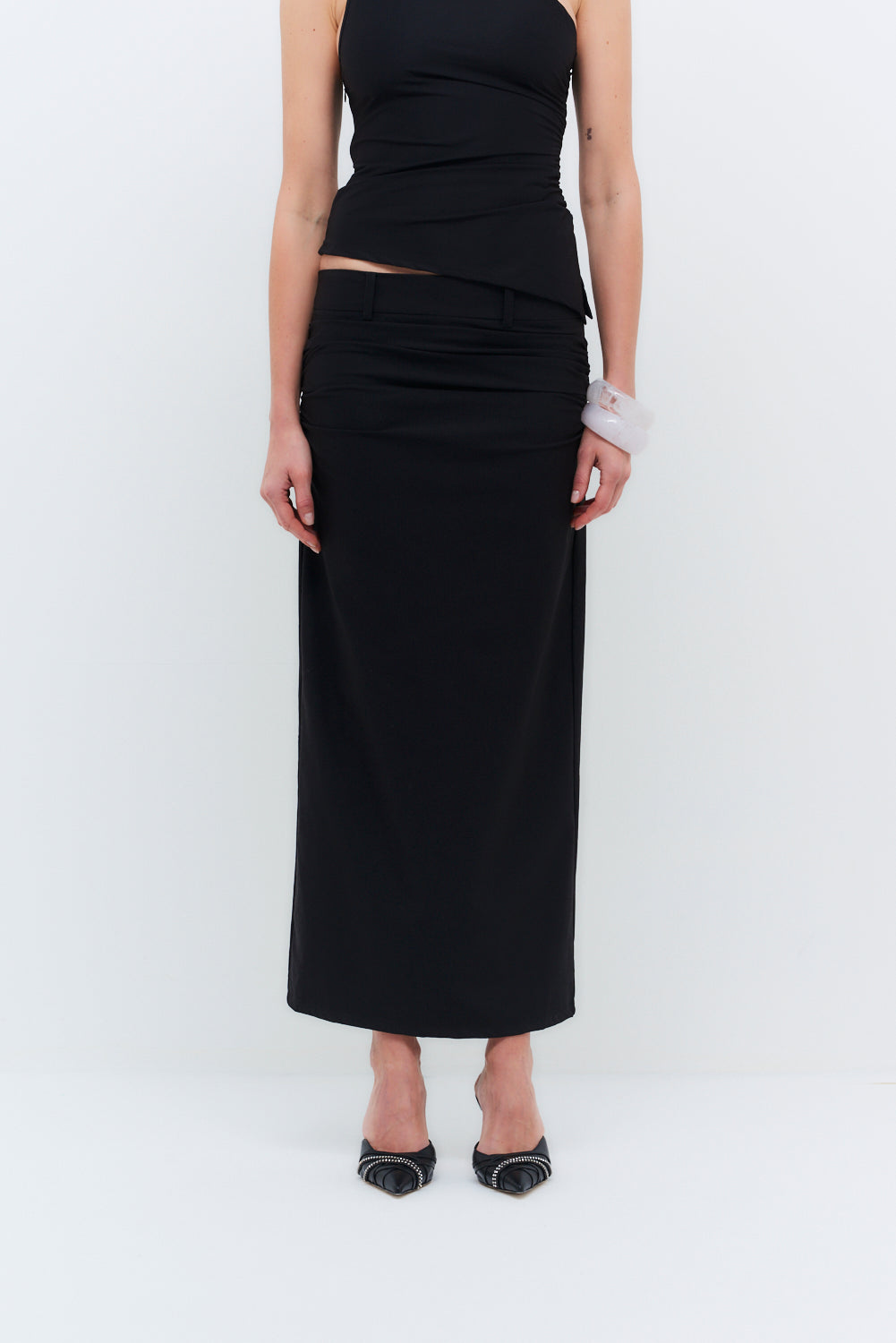 Designed as the perfect complement to the Rhea top, this skirt features super stretchy fabric and hip ruche detailing to flatter any body shape. Its versatile design makes it a stylish choice for any occasion, effortlessly transitioning from day to night.