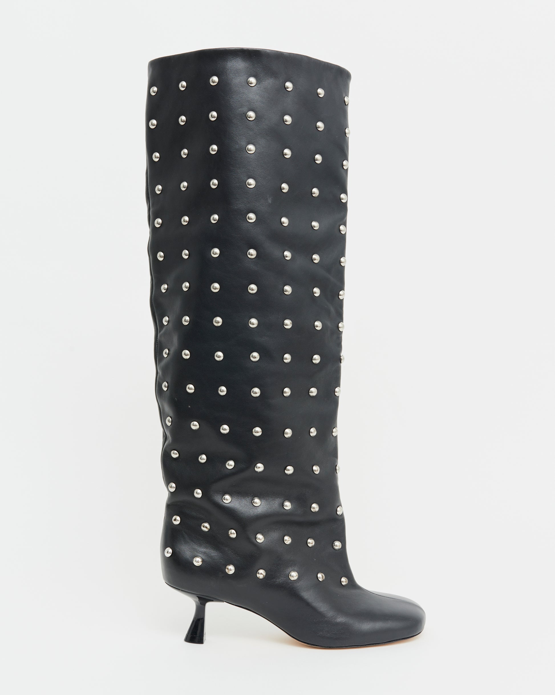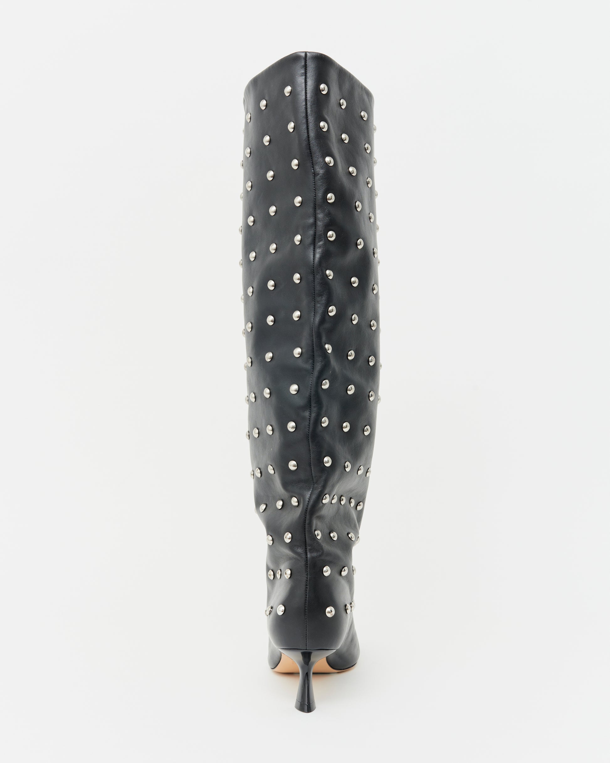 Crafted from supple, premium leather, this statement boot features a relaxed, slouchy silhouette that creates a luxurious texture and a wide-leg opening for effortless styling. What sets RINA apart are the stunning stud embellishments, adding a bold, on-trend edge that’s a must-have for the season.