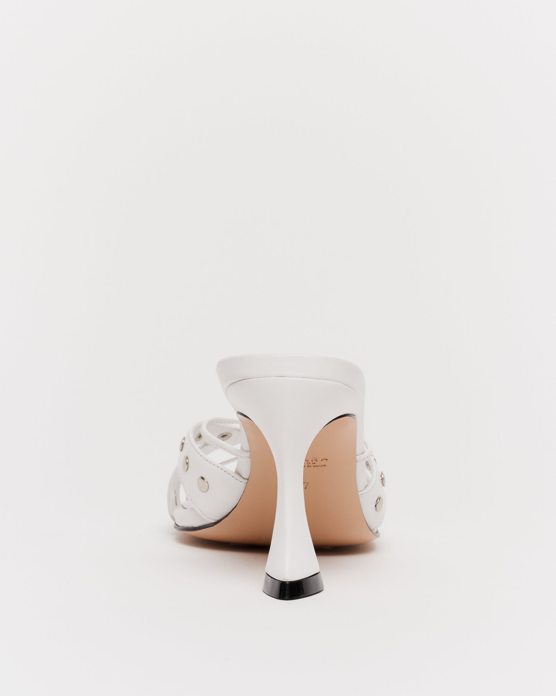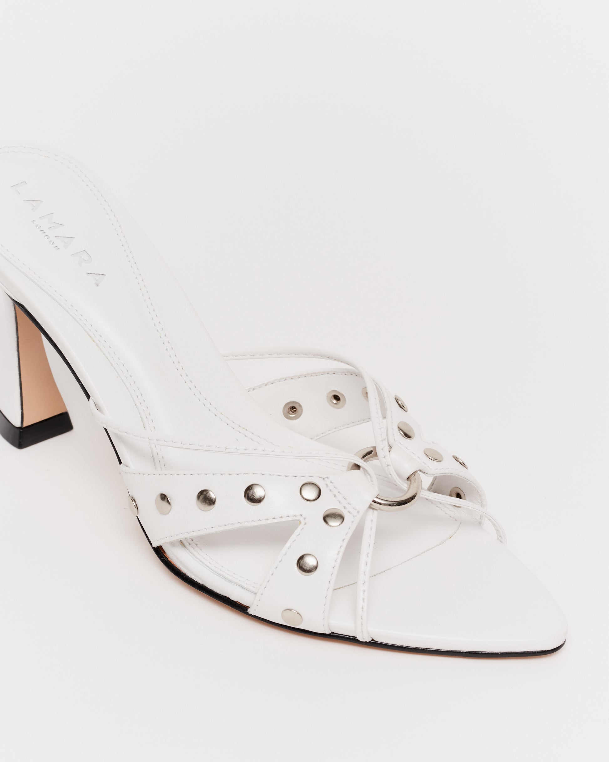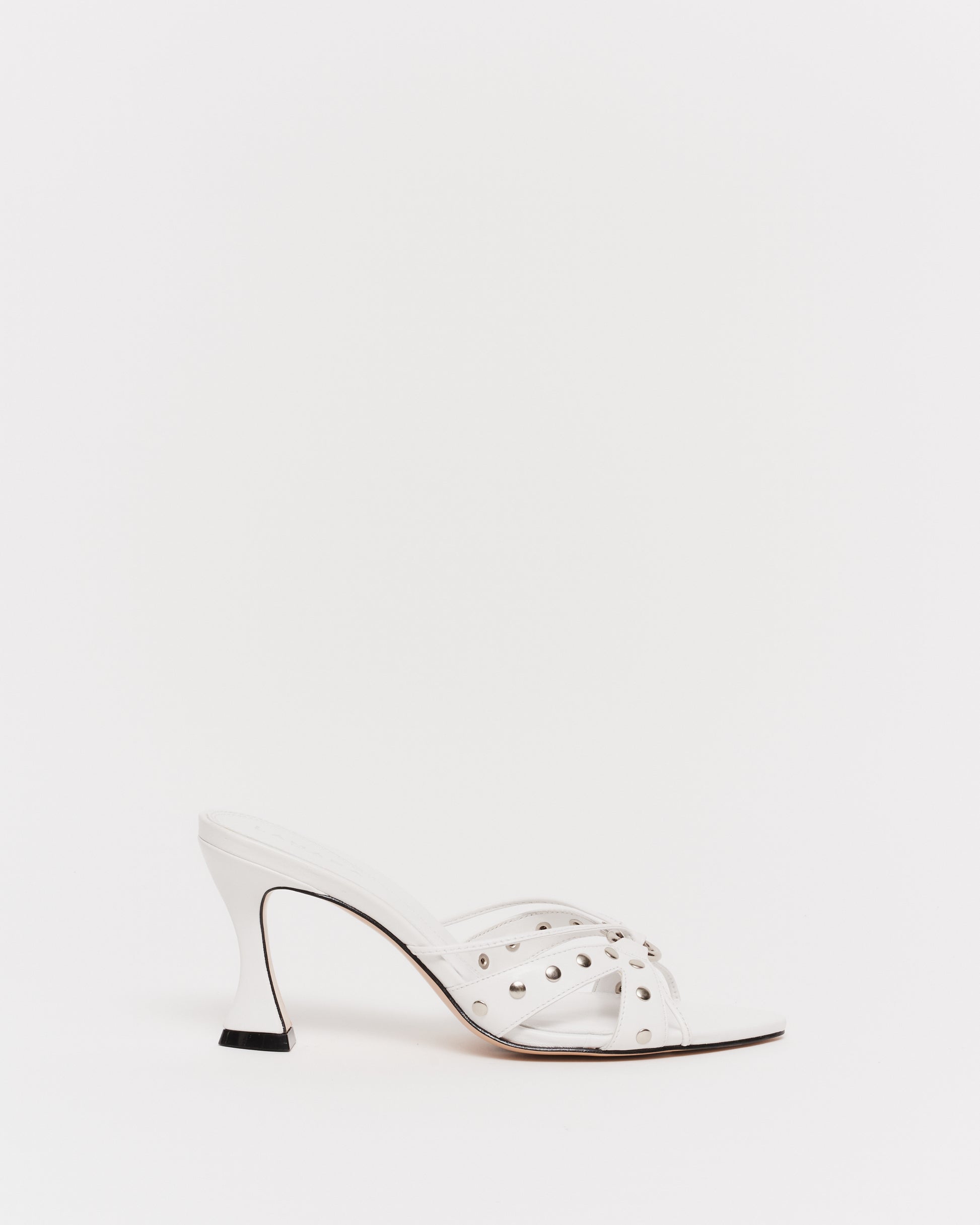 Introducing the BELLA mule - a striking blend of contemporary design and edgy sophistication. These mules are the perfect choice for those who seek a bold and fashion-forward statement piece for their footwear collection. The flared blocky heel offers just the right amount of lift, perfect for all day wear. The metal detailing adds an edge that elevates any outfit.