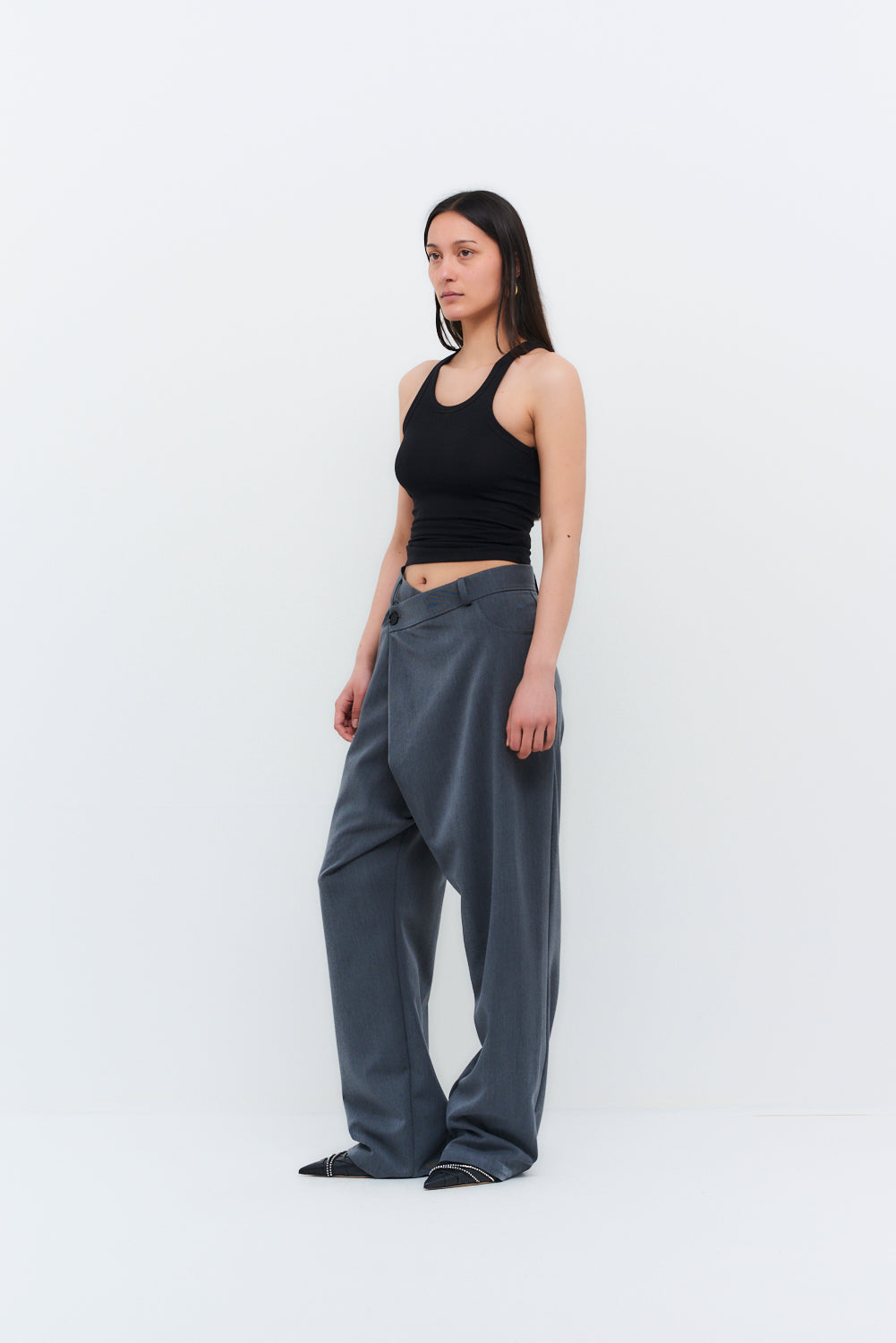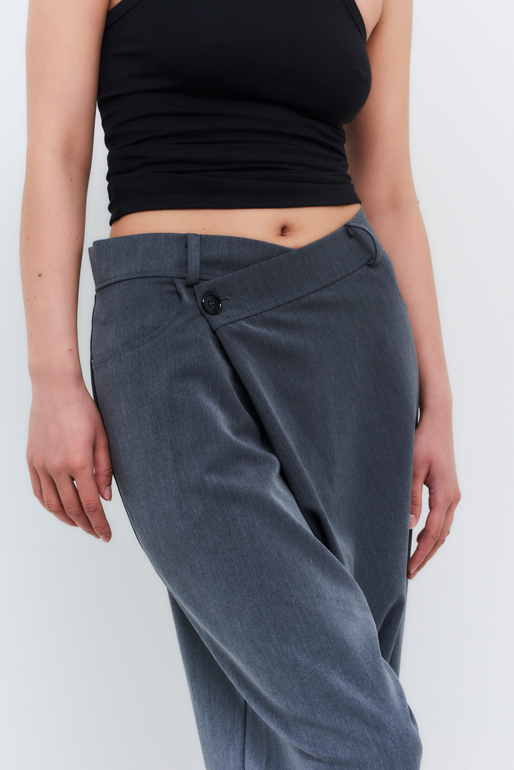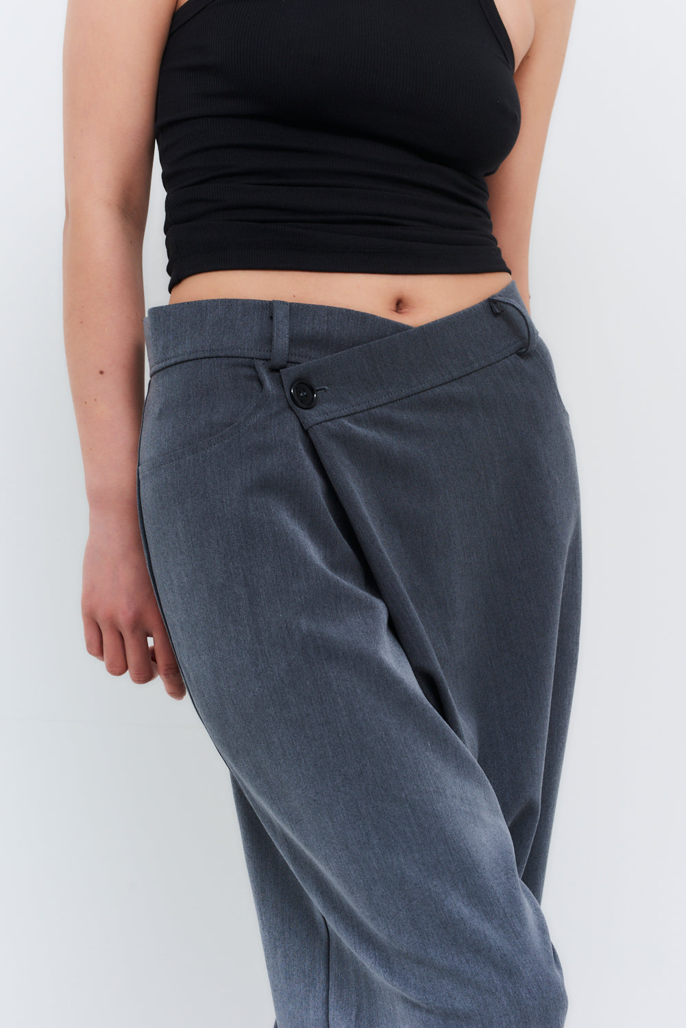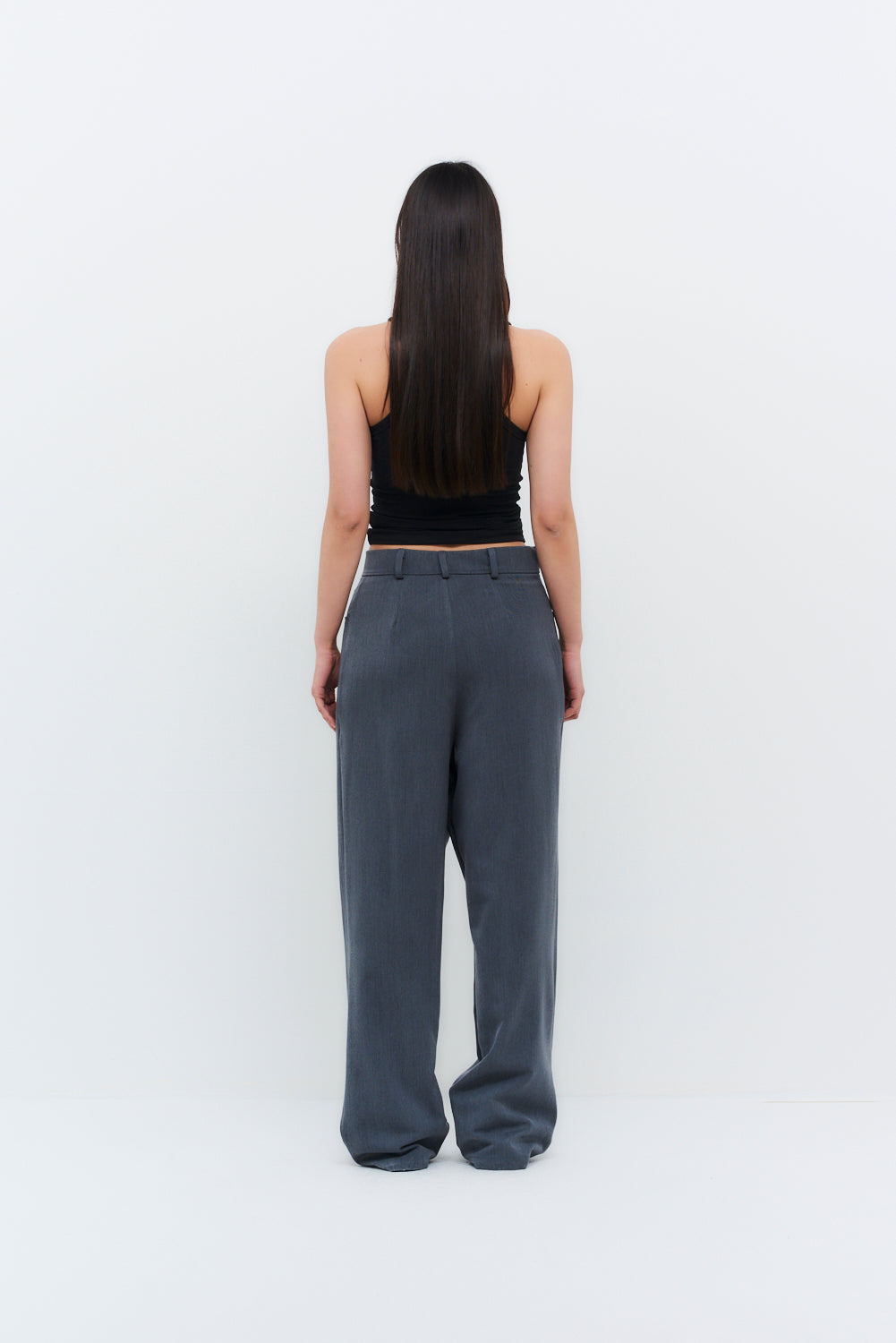 The baggy design of these trousers create a contemporary silhouette that stands out from the typical straight cut suit pants. Despite their relaxed fit, they are tailored with precision to ensure they drape elegantly and maintain a clean, polished appearance.